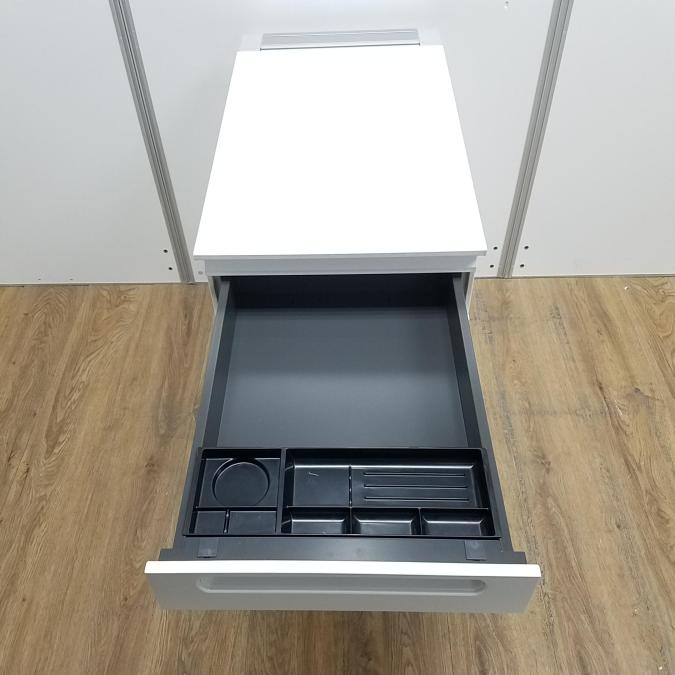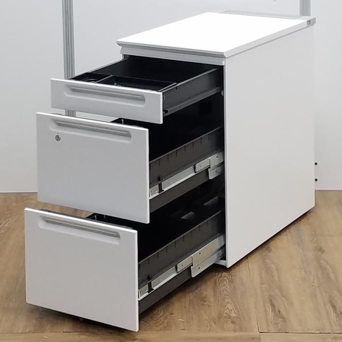 【商品入替のため、残り2台限り】クロガネ製 FUシリーズ ホワイト シリンダー H720サイズ 収納と作業スペースを同時に確保! 3段脇机!!- 京都東寺店