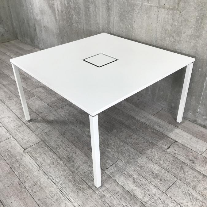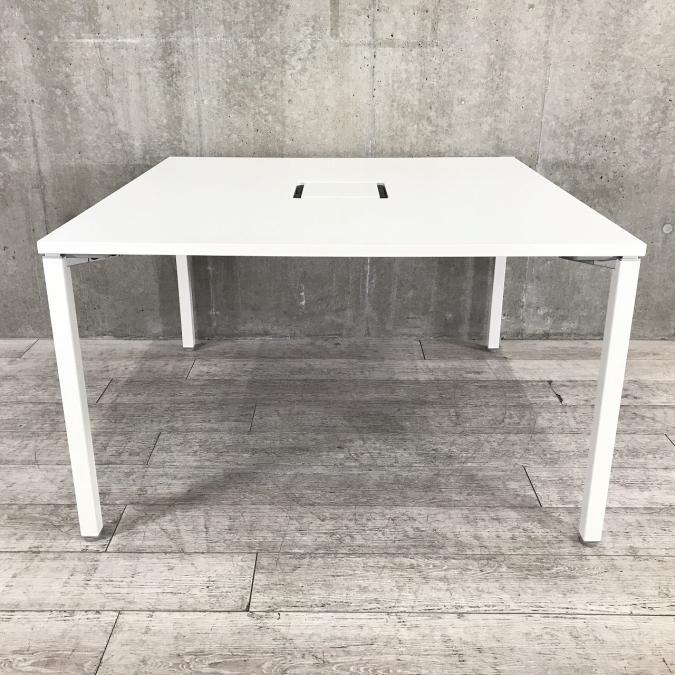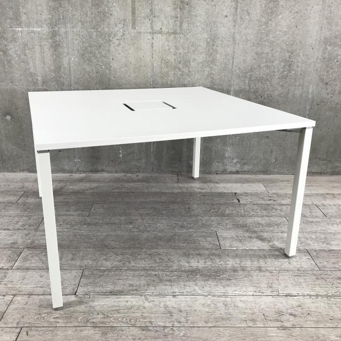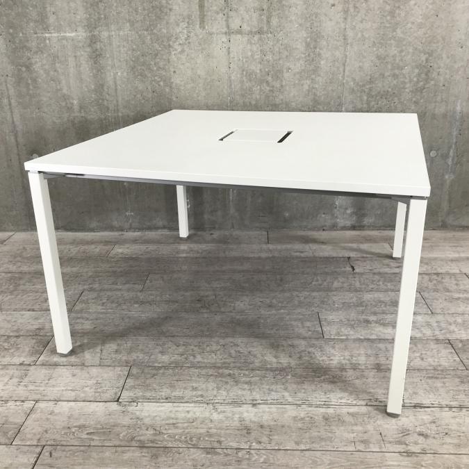【パソコンを使用する会議やワークテーブルとしてのご使用に最適!】■オカムラ アプションフリーシリーズ OAミーティングテーブル W1200×D1200×H720mm ホワイト 配線ボックス付【Aption Free】【フリーアドレス】【ABW】- 川崎店