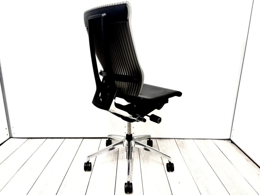 着座と同時に沈みこみながら後方へスライドするパッシブ・スライド・シートが特徴的なチェアとなっております。