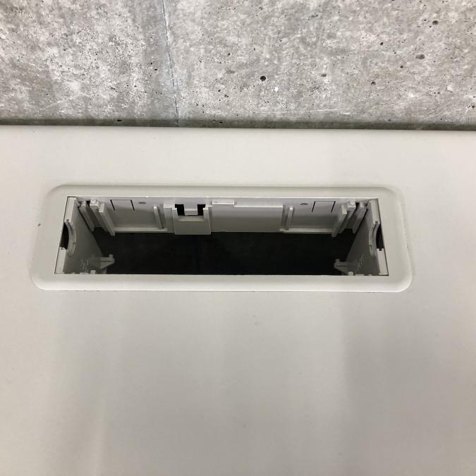 配線取り出し口が天板奥に2か所あり、