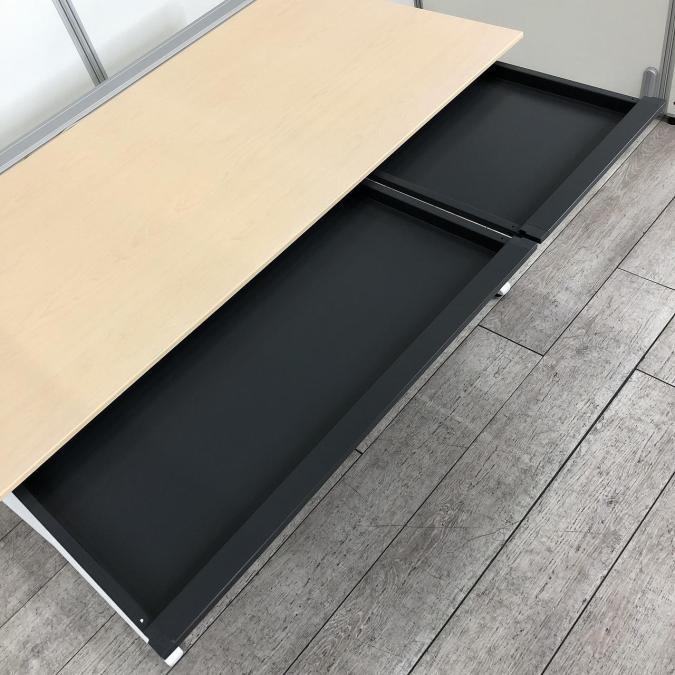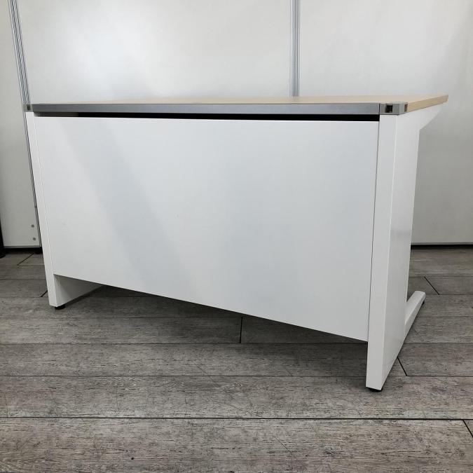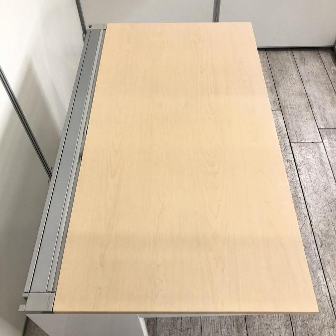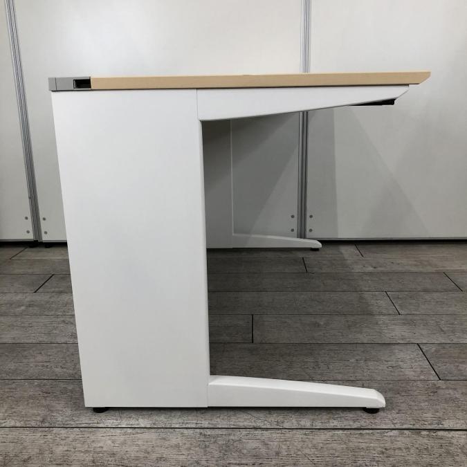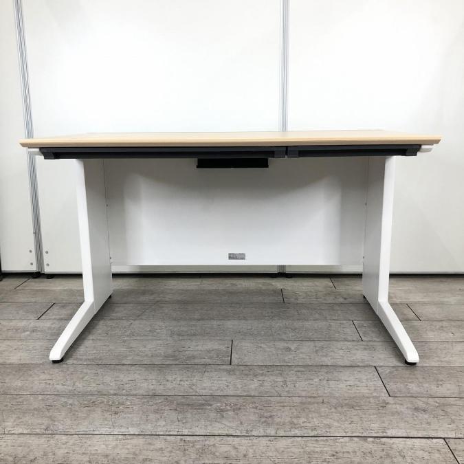 【オシャレな木目ナチュラル天板!シンプルなデザインの平机!定番W1200サイズ!】■クロガネ製 平机 引出し付 ■木目ナチュラル天板×本体ホワイト- なんば日本橋店