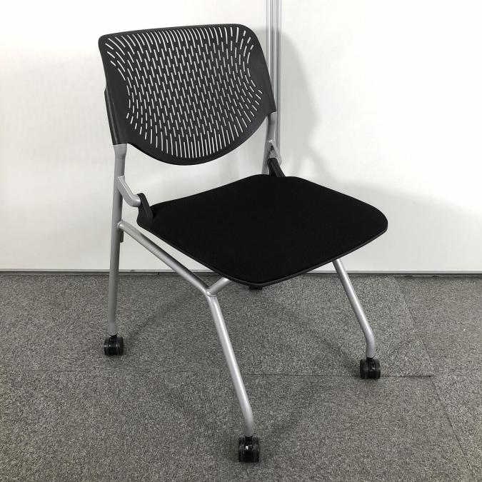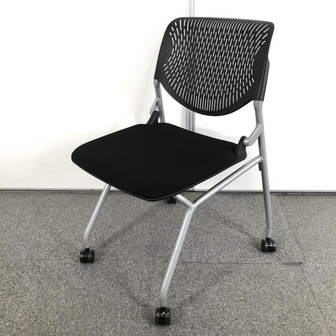 【関東倉庫在庫品】【フレキシブルに使える!便利なネスティングチェア!】■オカムラ(okamura) ルナチェア(RUNA) ネスティングチェア ミーティングチェア 肘無し ■キャスター付 ■背面樹脂メッシュ(ヌードタイプ) ■ブラック 【弊社使用欄:A01015956】【ECBMC】