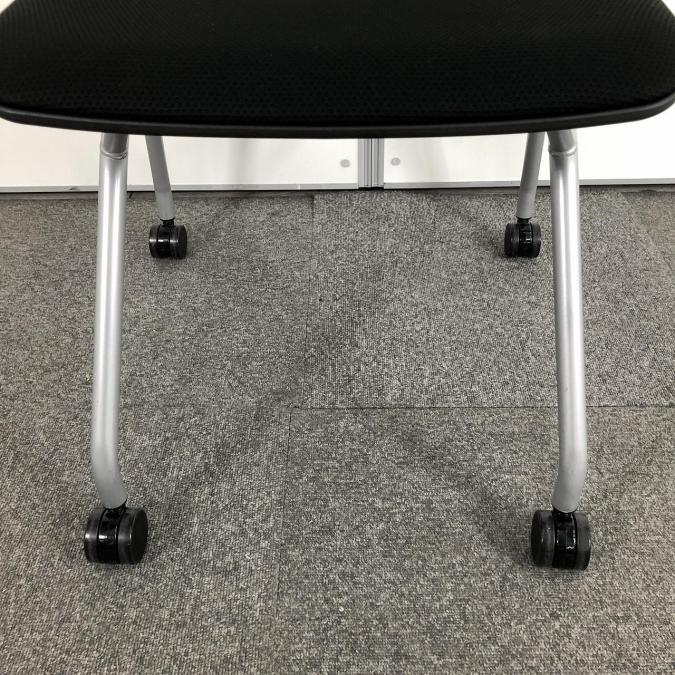 【シンプルなデザインで使いやすい!重ねて収納可能なスタッキングチェア!会議室、共有スペースなどに!】■オカムラ(okamura)製 ルナチェア ネスティングチェア ミーテイングチェア ■背ヌードメッシュ ■キャスター付 ■ブラック- つくば店