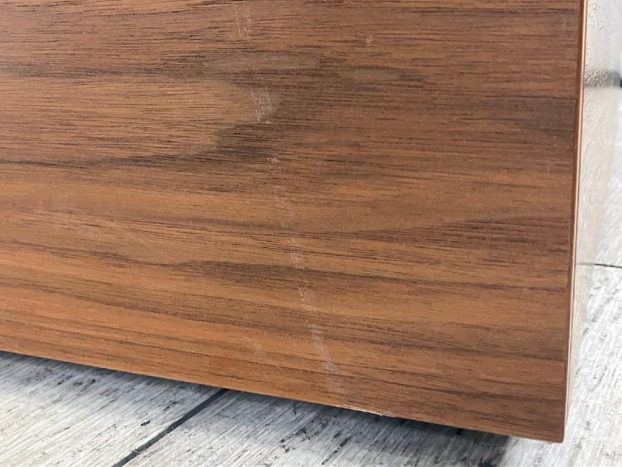- かなり強い濃い黄ばみ・変色が商品全体にある。(例、天板、正面、背後、サイド部分にある。)