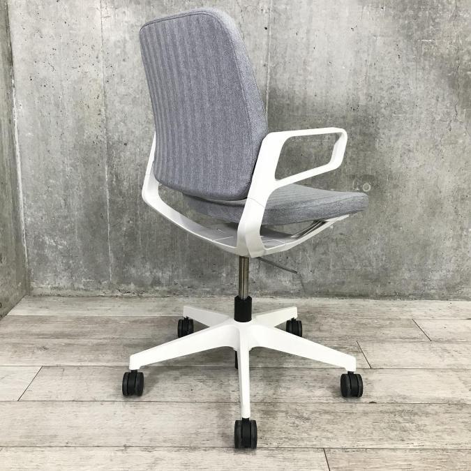 【様々な空間にフィットするスマートなデザイン!デスクワークにもミーティングにも】■イトーキ(ITOKI)製 レヴィチェア (Levi) ミーティングチェア ■サークル肘 五本脚タイプ 高さ:ノーマル ■張地:ライトグレー×ホワイトフレーム【2501】弊社使用欄【A00993203】- 埼玉本店