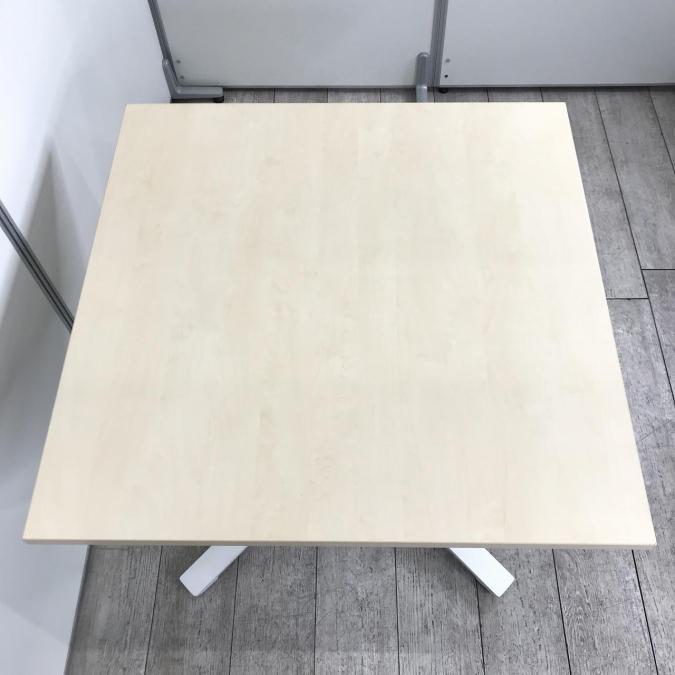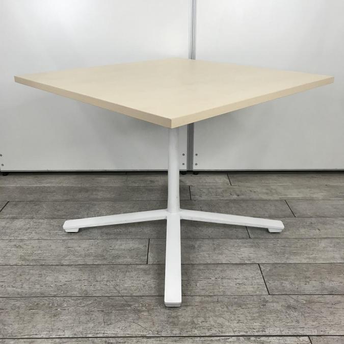 【ナチュラル天板のカフェ風テーブル!リフレッシュスペースなどに!】■コクヨ(KOKUYO)製 角テーブル ミーティングテーブル W900×D900×H720mm ■木目ナチュラル天板×ホワイト脚【AD】- 在庫数