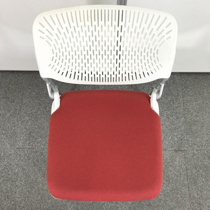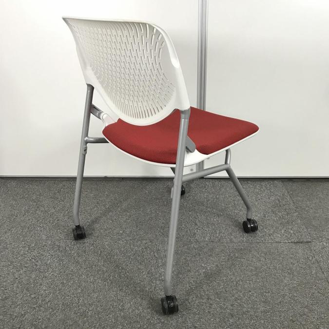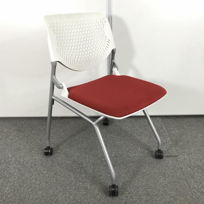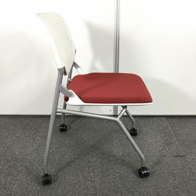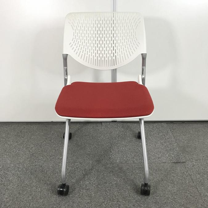 【A00989157】【シンプルなデザインで使いやすい!重ねて収納可能なスタッキングチェア!会議室、共有スペースなどに!】■オカムラ(okamura)製 ルナチェア ネスティングチェア ミーティングチェア ■背ヌードメッシュ ■キャスター付 ■背面ホワイト×座面レッド【IB】サーキュラーバリューCO2削減量の算出について