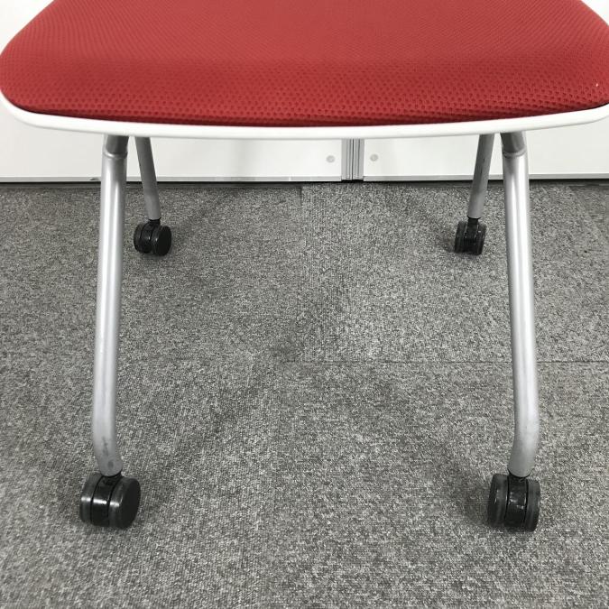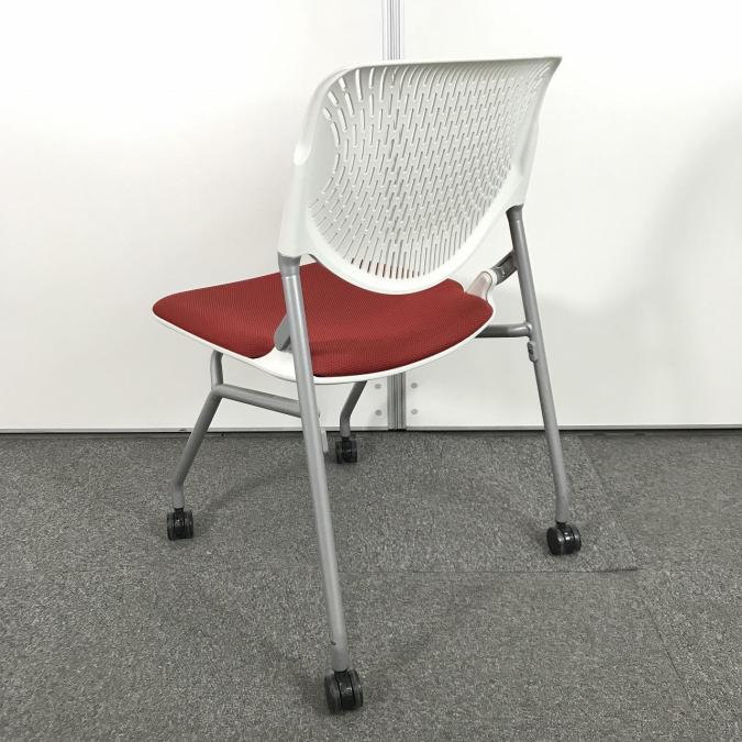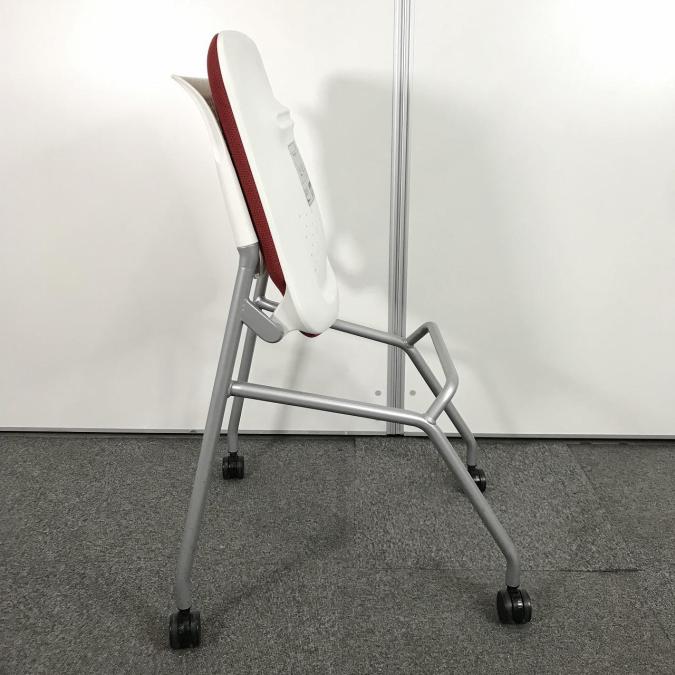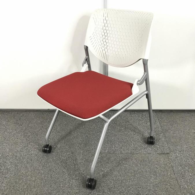 【A00989157】【シンプルなデザインで使いやすい!重ねて収納可能なスタッキングチェア!会議室、共有スペースなどに!】■オカムラ(okamura)製 ルナチェア ネスティングチェア ミーティングチェア ■背ヌードメッシュ ■キャスター付 ■背面ホワイト×座面レッド【IB】サーキュラーバリューCO2削減量の算出について