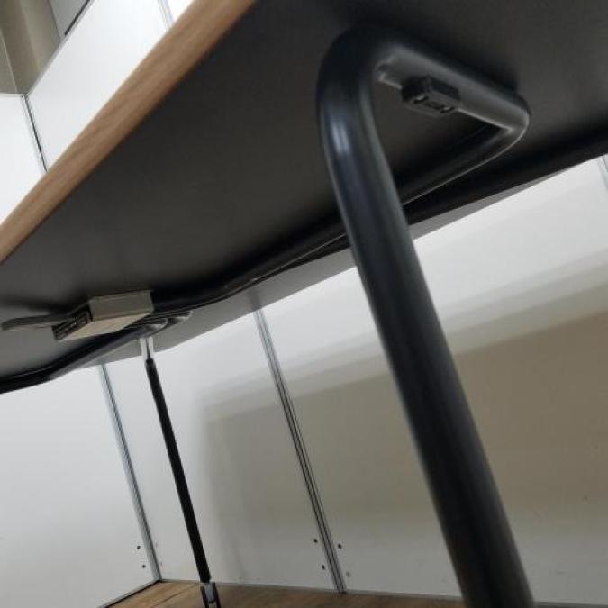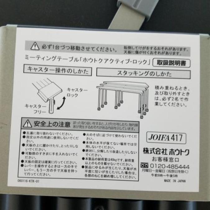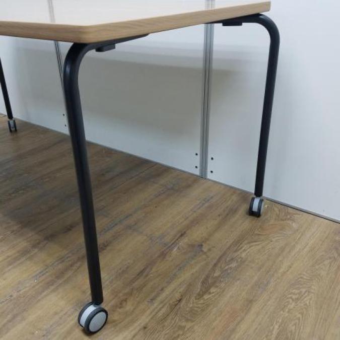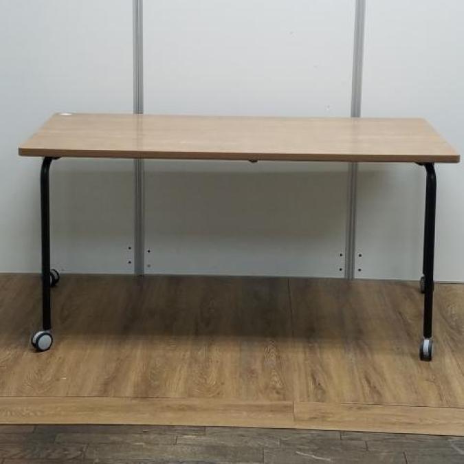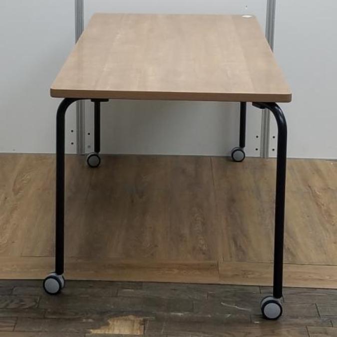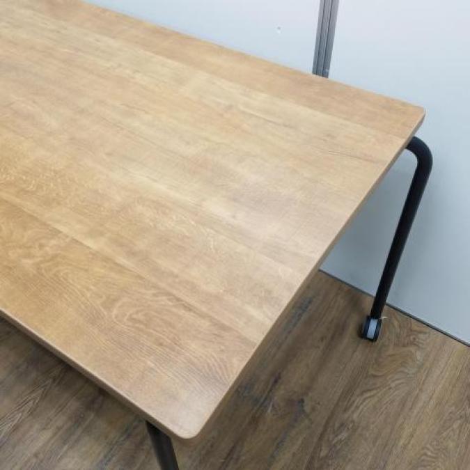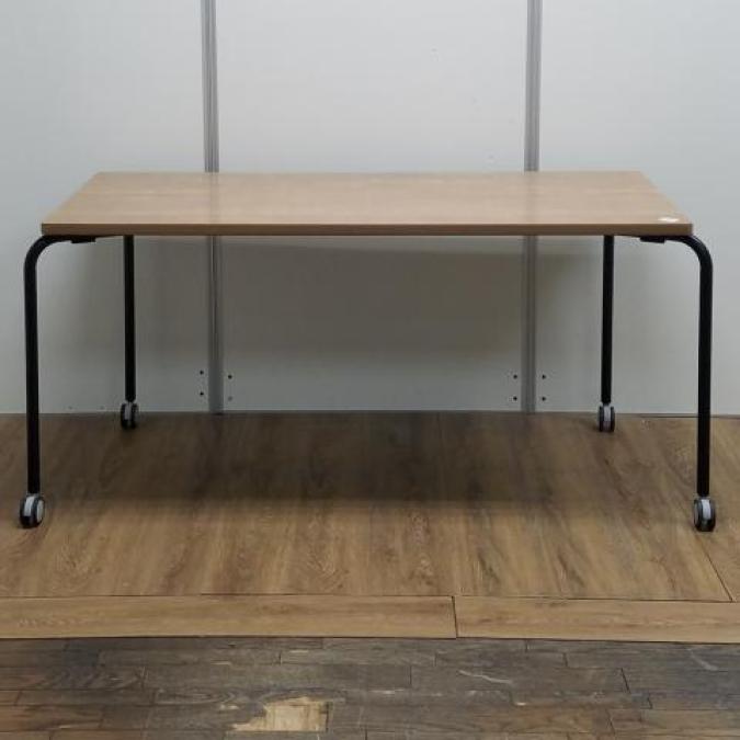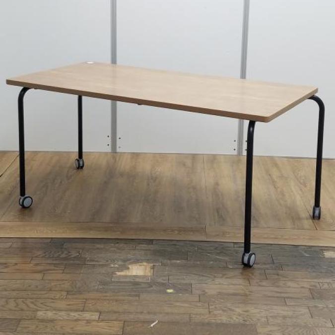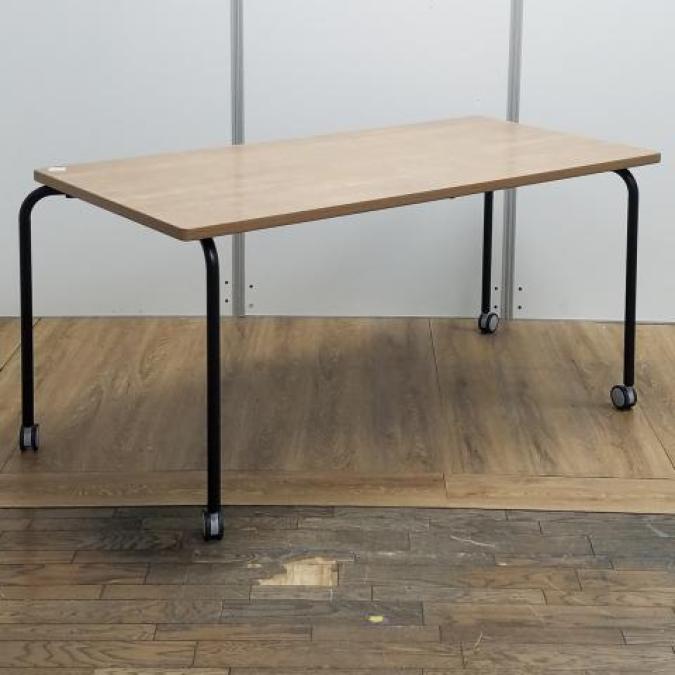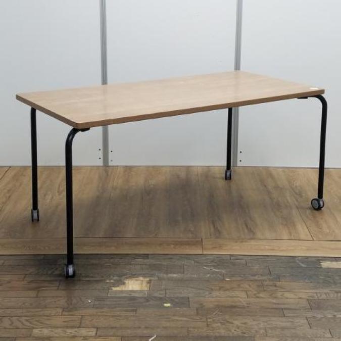 【重ね収納が可能!ナチュラル天板がカフェ風のオシャレな雰囲気に!】■ホウトク製 ホウトクアクティブ・ロック 角テーブル ■木目ナチュラル天板×ブラック脚 ■キャスター付- 京都東寺店