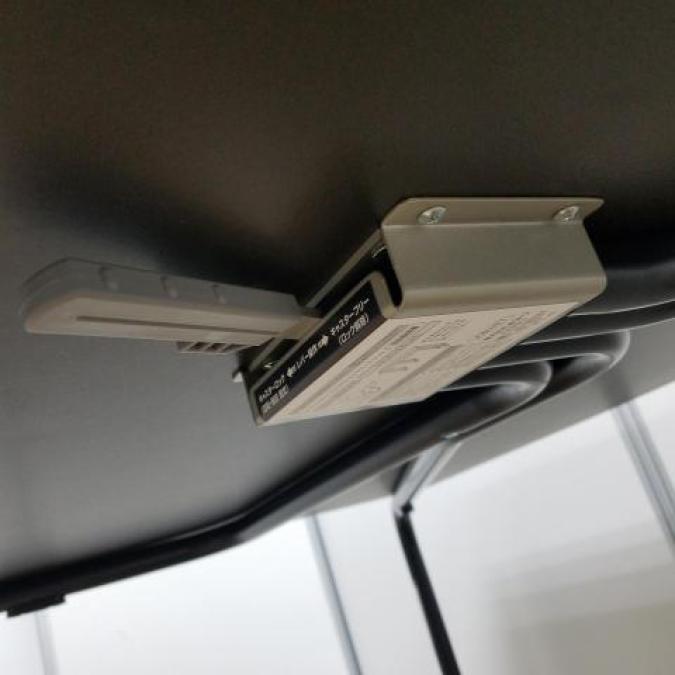 天板裏のレバーによって4か所全てのキャスターの回転と旋回のストッパーを操作できます。