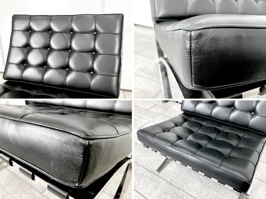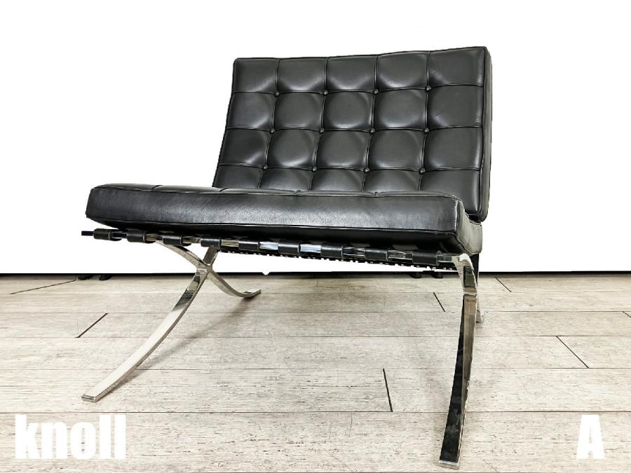 A)knoll/ノール 本革 バルセロナチェア ミース・ファンデル・ローエ ブラック 刻印あり 正規品- デザイナーズ家具センター