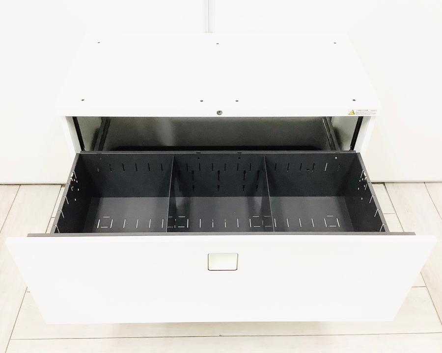 【オフィスの必需品!大容量の三段キャビネット!】■オカムラ(okamura)製 レクトラインシリーズ 3段ラテラル ローキャビネット ■天板/ベース付 ■シリンダー錠 ■ホワイト 【弊社使用欄:A01037187】