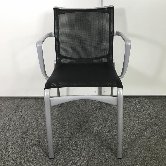 【A00994047】【フレームデザインの美しさと快適メッシュのスタッキングチェア!】■カッシーナ イクスシー(cassina ixc )アリアス(ALIAS) ハイフレームアームチェア スタッキングチェア ■肘付き 背面・座面メッシュ 4本脚タイプ ■ブラック【IB】@f12- 茨城南店