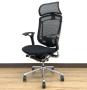 【ヘッドレスト付き】メッシュチェア 高機能モデル|在宅ワーク・長時間作業に最適|リクライニング・座面調整搭載■(Contessa)コンテッサチェア 可動肘付 ブラック