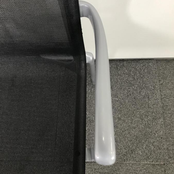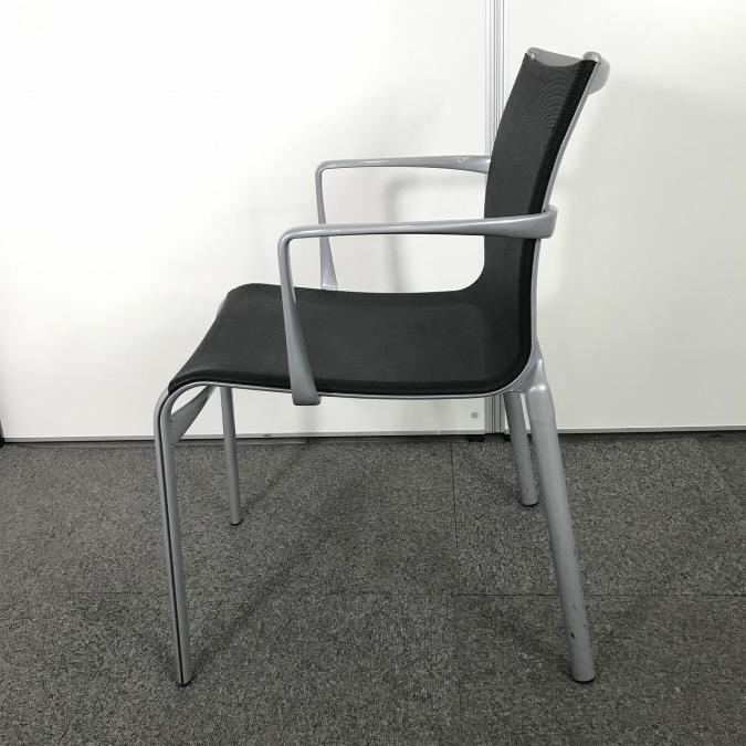 【背座面メッシュで通気性抜群!重ねて収納!固定肘付でリラックスして使えます!】■カッシーナ製 アリアナシリーズ スタッキングチェア ■背座面ブラック×他グレー ■全面メッシュ ■固定肘- 埼玉本店