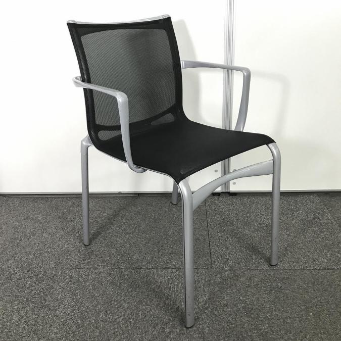 【フレームデザインの美しさと快適メッシュのスタッキングチェア!】■カッシーナ イクスシー(cassina ixc )アリアス(ALIAS) ハイフレームアームチェア スタッキングチェア ■肘付き 背面・座面メッシュ 4本脚タイプ ■ブラック- 千葉店