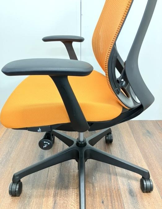 【入替セールにつき20%OFF!】三次元曲面が身体にフィット・まるで手を添えて包み込まれるような優しい座り心地!/オススメ(おすすめ) /人気商品【弊社使用欄:A00978054】■オカムラ製 シルフィーチェア ハイバック肘付き 背面メッシュ オレンジ (ブラックフレーム)- 池袋店