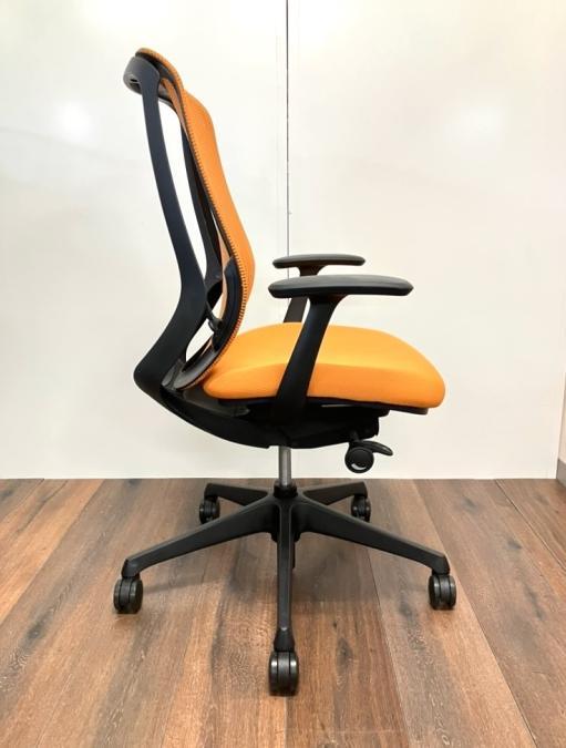 【在庫入替セール品!】【背のカーブを変えられる新感覚のオフィスシーティング!】■オカムラ シルフィーチェア 可動肘付 オレンジ ハンガー付 ホワイトフレーム ■新感覚のオフィスシーティング!【Okamrua Sylphy】