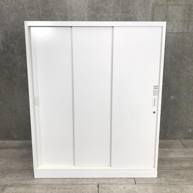 オカムラ製 人気レクトラインシリーズ ホワイト シリンダー W800xD450XH1050 3枚引戸 ※ベースなし 3枚引き違い書庫!!