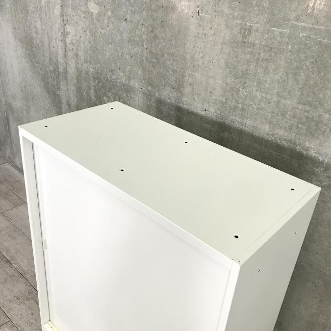 スライド式の扉のため導線を邪魔しません!使い勝手抜群の2枚引き違い書庫が入荷! ■オカムラ/レクトライン/ホワイト 2枚引き戸