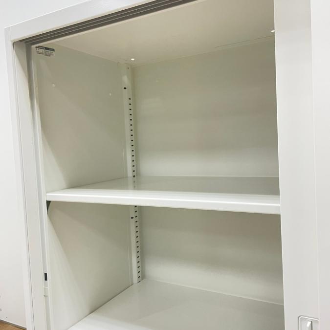 2枚引き戸書庫 オカムラ レクトライン 鍵付き シリンダー錠 ホワイト 天板無し スライド式の扉のため導線を邪魔しません