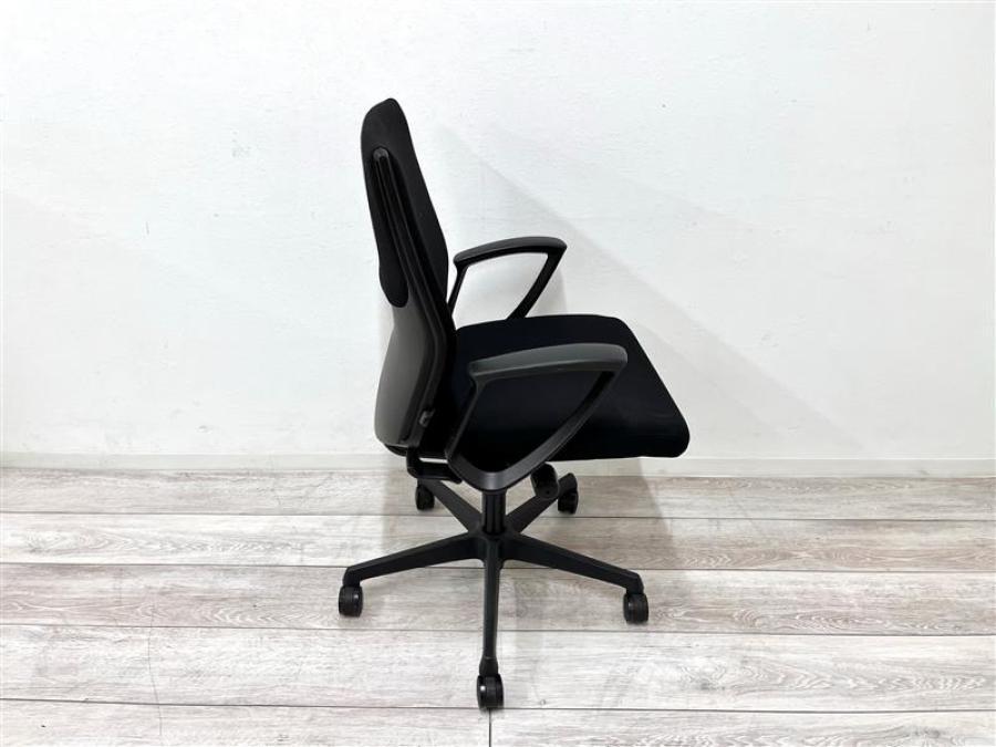 オカムラ エスクード ローバックモデル クッションタイプ デザインアーム付き ブラック×ブラックフレーム ランバーサポート搭載で安定感のある機能面と座り心地