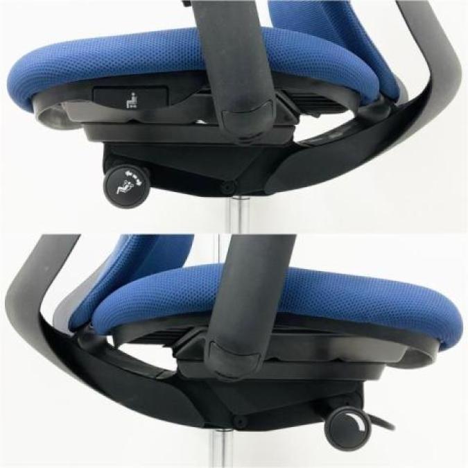 - 座面右下のダイヤル操作で、リクライニングの強弱調整が行えます。これまでのダイヤル式よりも、少ない回転数で、最弱?最強の調整が可能です。