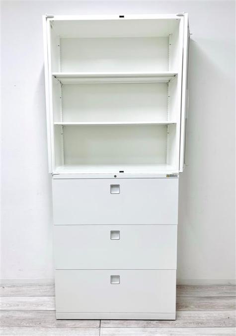 ☆H2150mm!【書庫探しに迷ったらコレ!】■オカムラ製 上下書庫セット(両開き+3段ラテラル) レクトラインシリーズ ホワイト ■省スペースに大量収納!オフィスの書類をまとめて整理!【Okamura Rectline】