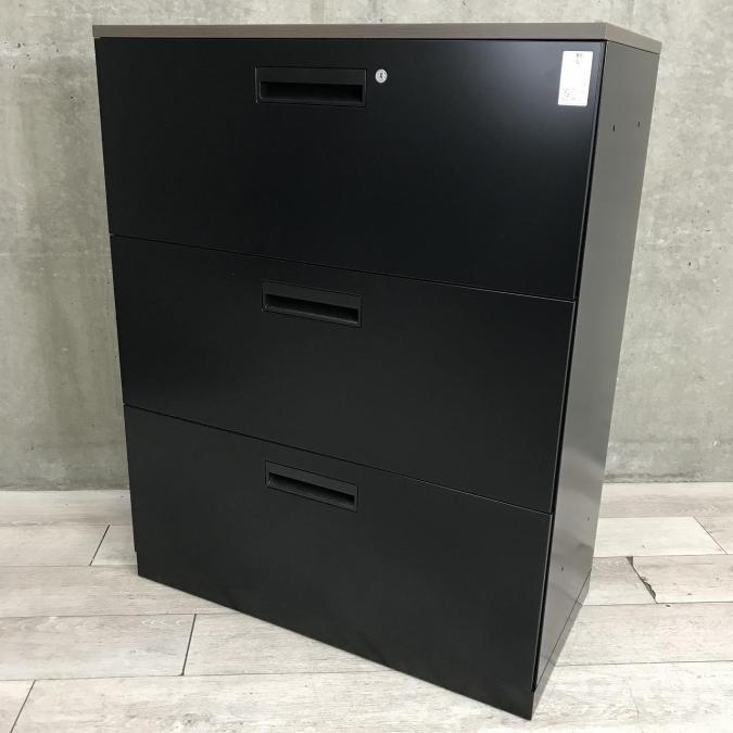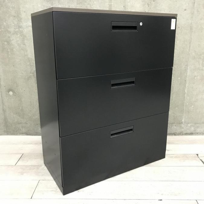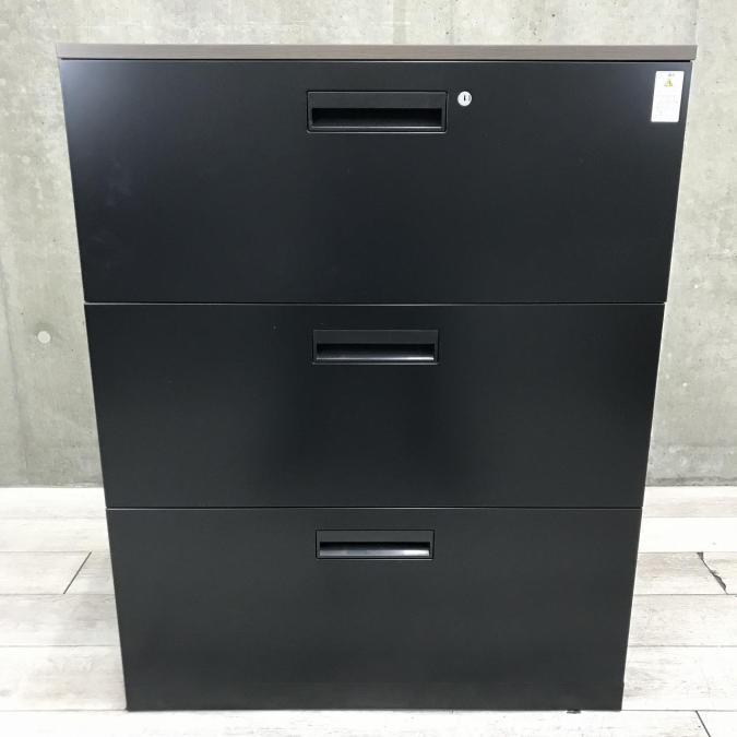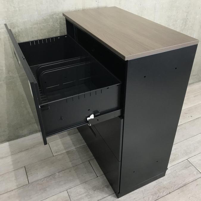 【天板付でカウンターにも!使い勝手抜群の3段ラテラル!】■KOKUYO(コクヨ) エディア 3段ラテラル ローキャビネット ■本体:ブラック オーク調天板付き ■シリンダー錠サーキュラーバリューCO2削減量の算出について