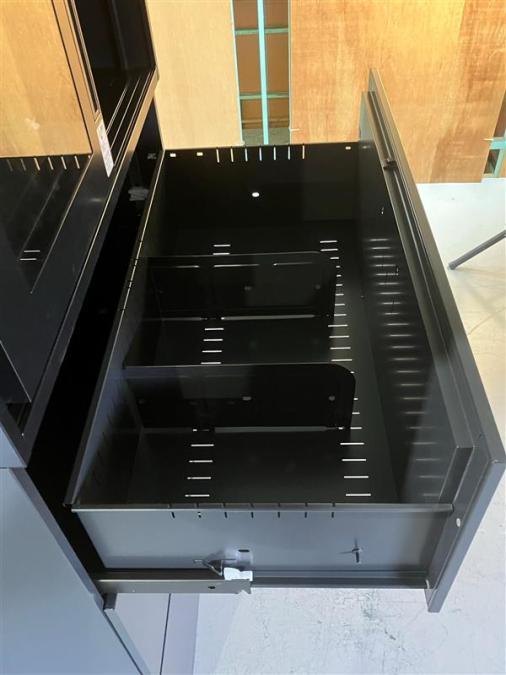 - 両開きタイプは扉が180度開き、通路の邪魔になりません。ラテラルタイプは引出しが限界まで出せ、出し入れ楽々。