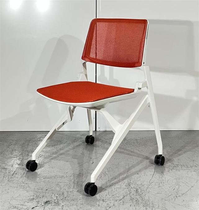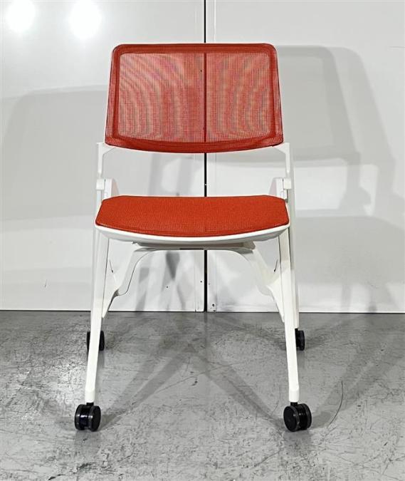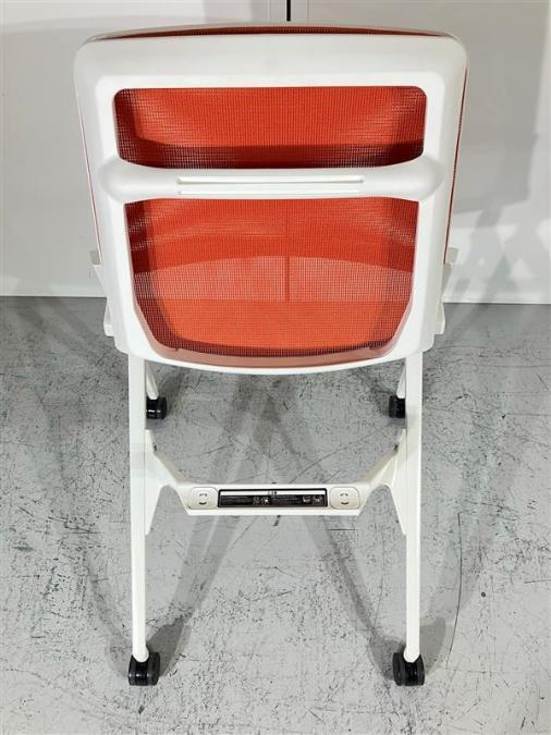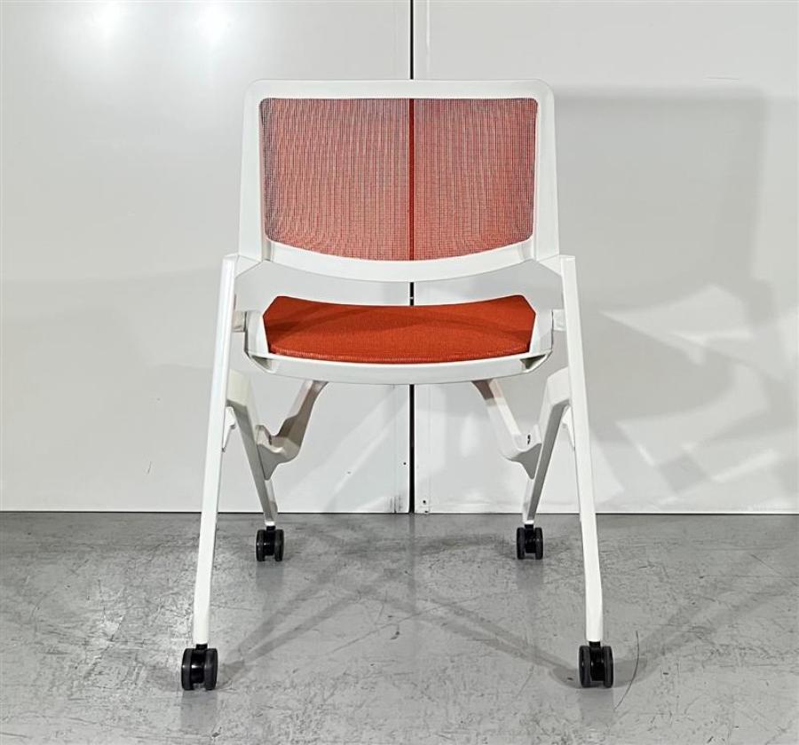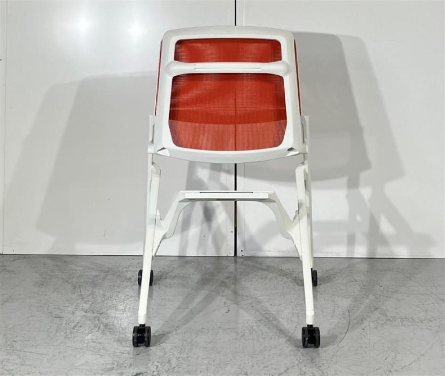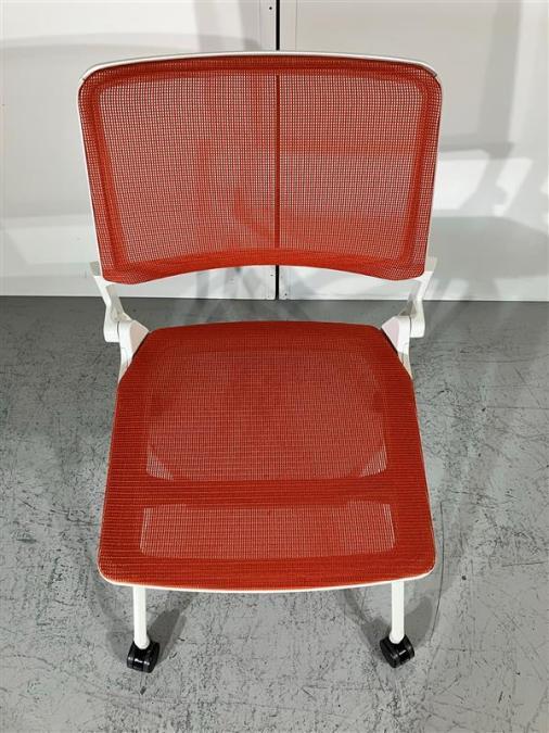【上質なデザインのネスティングチェア!】■オカムラ (okamura) マルカ (Marca) ネスティングチェア ■背・座面メッシュタイプ 肘無し キャスター付き ■オレンジ×ホワイトフレーム- 在庫数