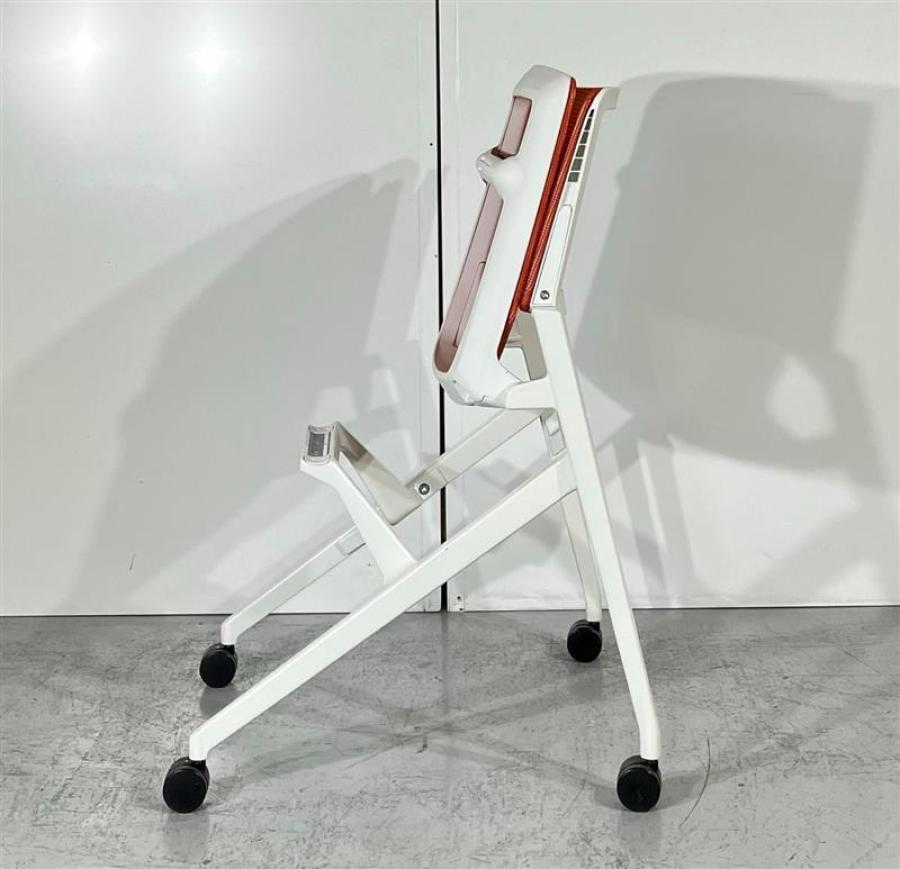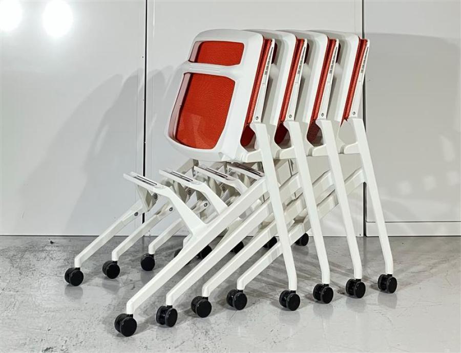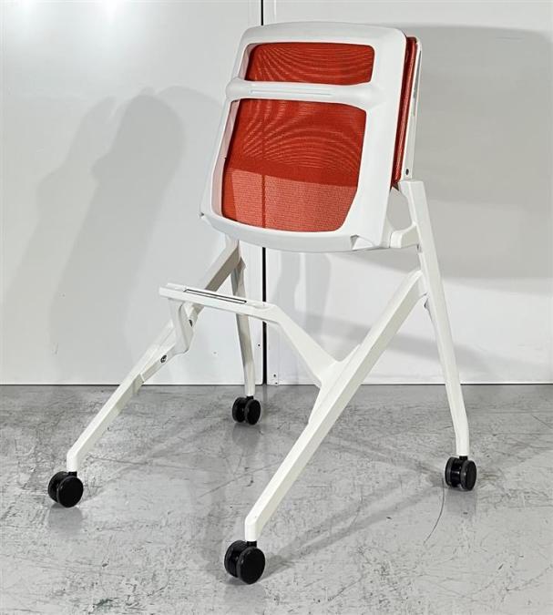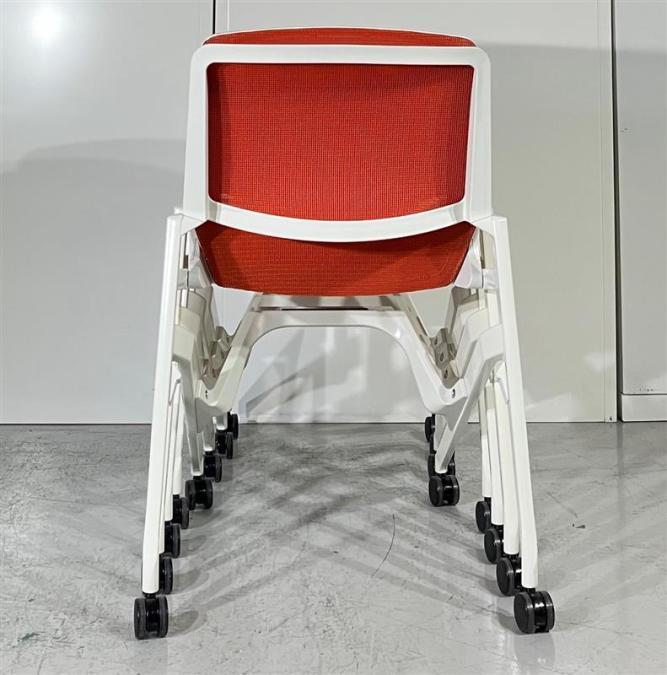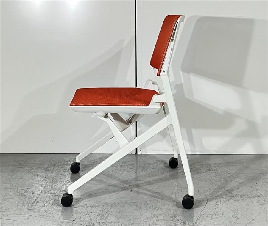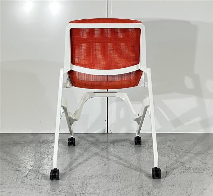 【上質なデザインのネスティングチェア!】■オカムラ (okamura) マルカ (Marca) ネスティングチェア ■背・座面メッシュタイプ 肘無し キャスター付き ■オレンジ×ホワイトフレーム- 在庫数