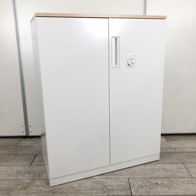 【収納物がひとめで分かる両開き戸タイプ!】■コクヨ(KOKUYO)製 エディア(EDIA)シリーズ 両開き書庫 ローキャビネット H1130㎜ ■天板・ベース付 ■ホワイト ■シリンダー錠【IB】
