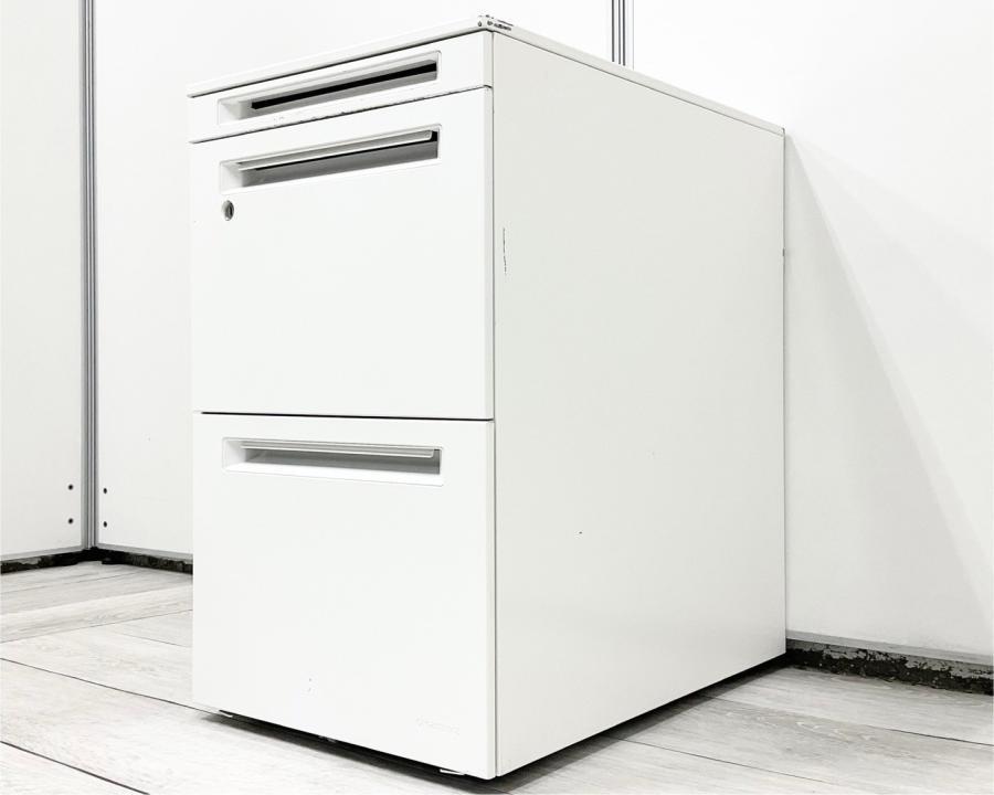 ■オカムラ(okamura)製 ■プロユニット ■3段ワゴン ■フリアド用ワゴン ■H650㎜ ■シリンダー錠 ■ホワイト 【弊社使用欄:A01040360,A01034509】【KN】