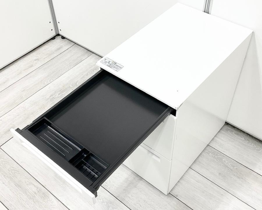 【フリアドデスクや平机の収納力アップに!ファイルや書類の収納に最適な3段ワゴン!】■オカムラ(okamura)製 プロユニット(Pro Unit)シリーズ 3段ワゴン フリアド用ワゴン H650㎜ ■シリンダー錠 ■ホワイト