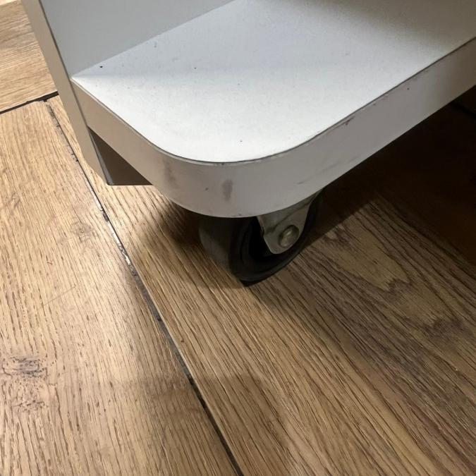 - 一部不具合あり天板歪み、引出開閉不可、アジャスター無し、施錠不可のようにそのカウンターの本来の効用を果たすための機能以外の一部が使用不可な状態。(例、引出が 開閉しづらい等がある。)