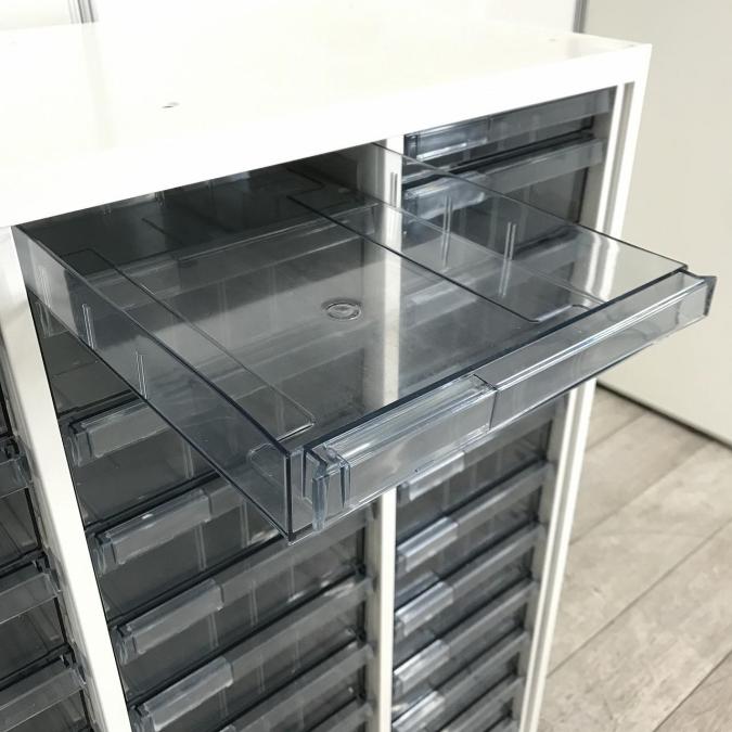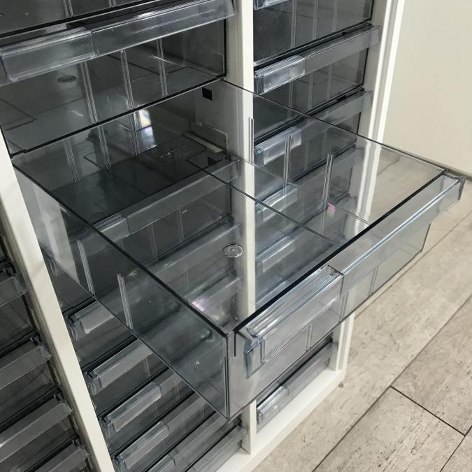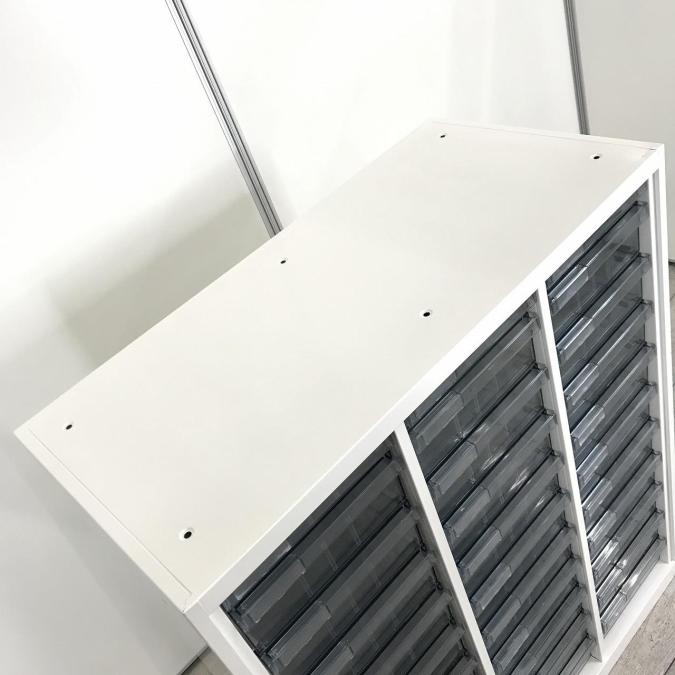 【書類・備品整理の必需品!書類や備品のストックにピッタリ!※1段目のみ浅型仕様】オカムラ レクトライン クリスタルトレー 書類 引き出し 透明 ケース ローキャビネット 整理 中古家具 オフィス家具 福岡 九州最大級《オフィスバスターズ福岡博多店は、福岡を拠点として、日本全国へ中古オフィス用品・オフィス家具を提供しております》