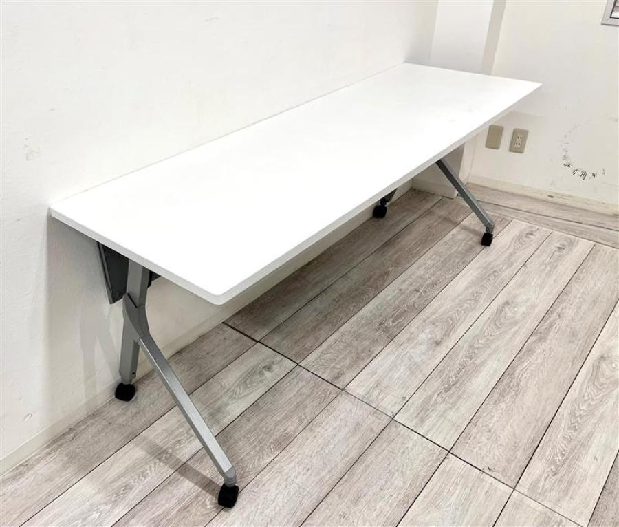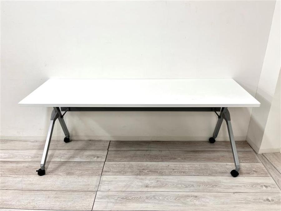 【定価8万円】【大量入荷!】【折り畳み収納可能!キャスター付きで移動も簡単なスタックテーブル!】■オカムラ/フラプター ■スタックテーブル/ホワイト ■W1800/D600/H720- 仙台店