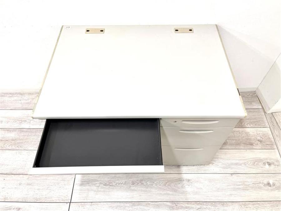 - 袖机のワゴンは、最下段がロング引出しになっており、従来より収納力120%アップ。