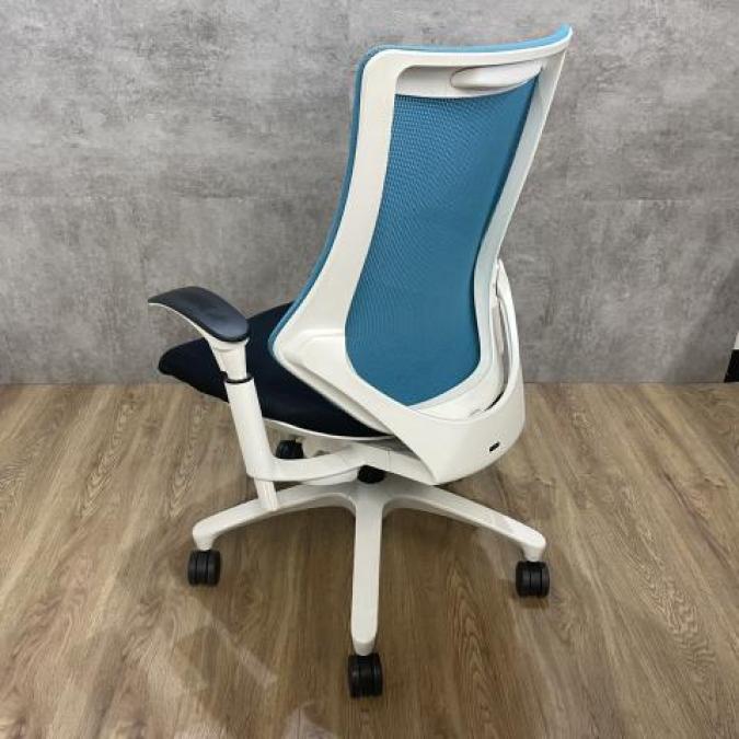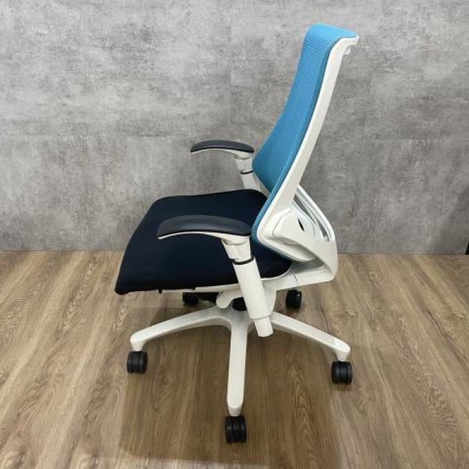 姿勢の変化にフレキシブルに対応!スタイリッシュで座り心地も抜群な大人気の高機能チェアが入荷! ■イトーキ(ITOKI) エフチェア(f)/ストロングブルー×ホワイトフレームメッシュ 背面メッシュ コートハンガー付・可動肘付 旧タイプ