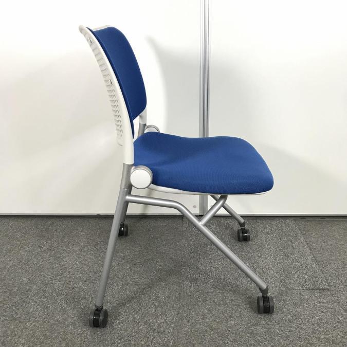 【定価6万円】【分厚いクッションが長時間の着座を快適な座り心地にしてくれます!】■ウチダ製 ブルーメ ネスティングチェア 背パッド付 ■ブルー ■キャスター付【2410】弊社使用欄【A00978726】- 埼玉本店