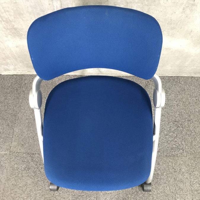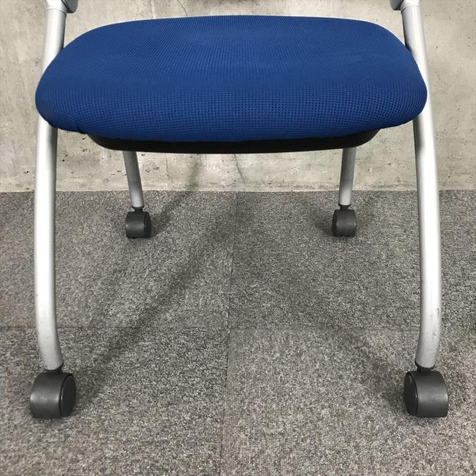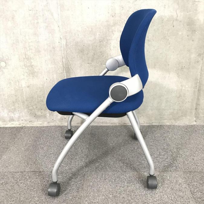 【グッドデザイン賞受賞品!厚めのクッションとしなやかな背もたれで安定感のある座り心地!】■コクヨ製 ジグザチェア 肘無しミーテイングチェア ■ブルー ■キャスター付サーキュラーバリューCO2削減量の算出について