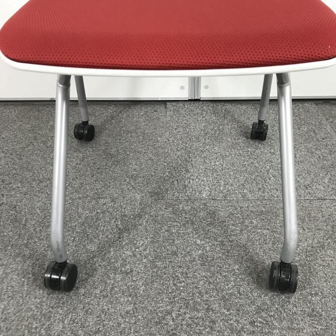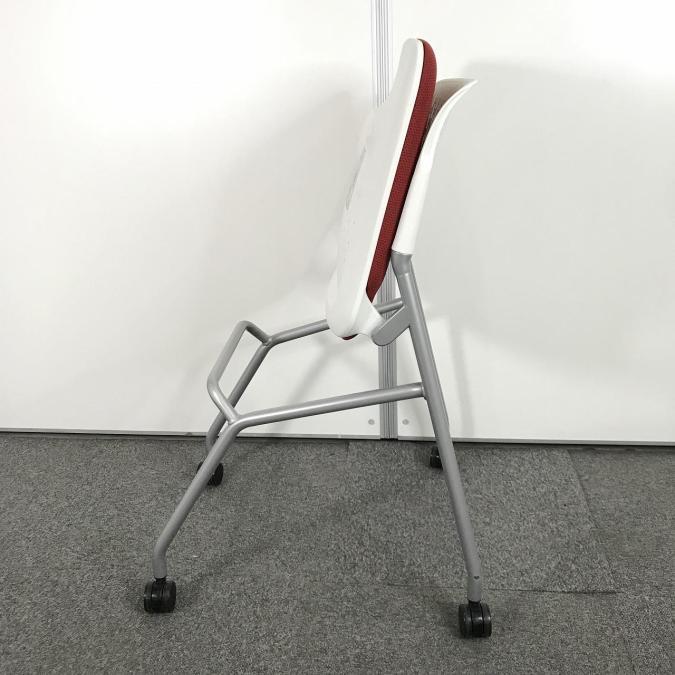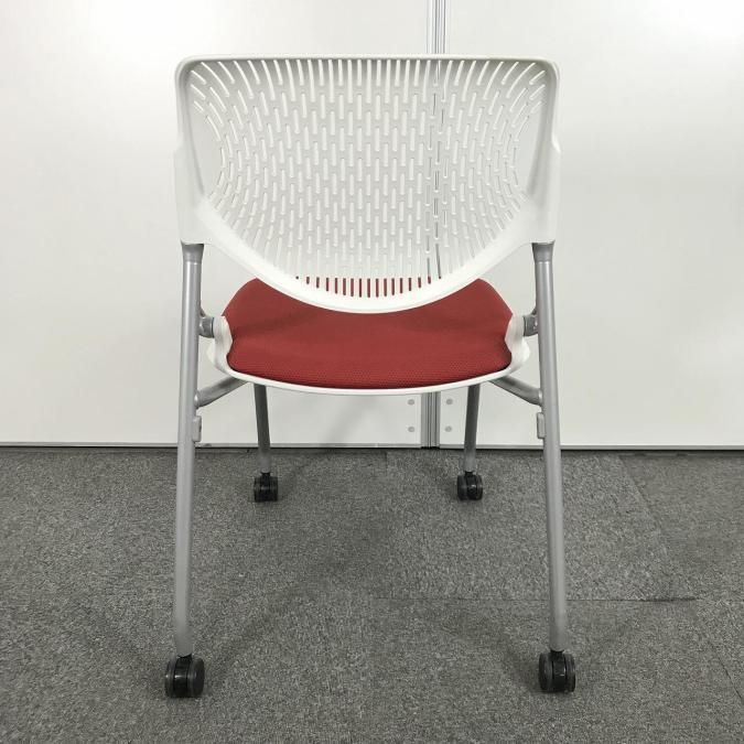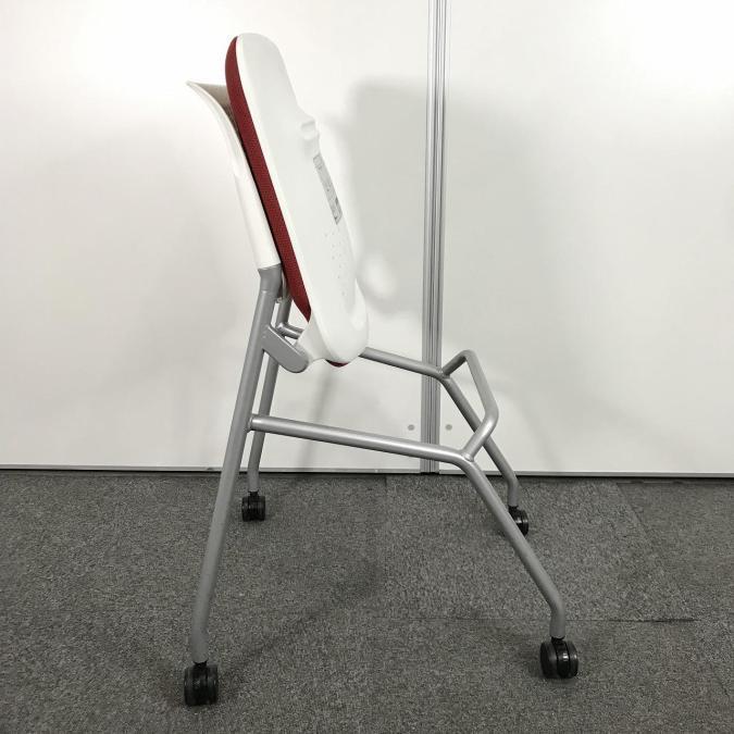 【シンプルなデザインで使いやすい!重ねて収納可能なスタッキングチェア!会議室、共有スペースなどに!】■オカムラ(okamura)製 ルナチェア ネスティングチェア ■背ヌードメッシュ ■キャスター付 ■背面ホワイト×座面レッド- なんば日本橋店