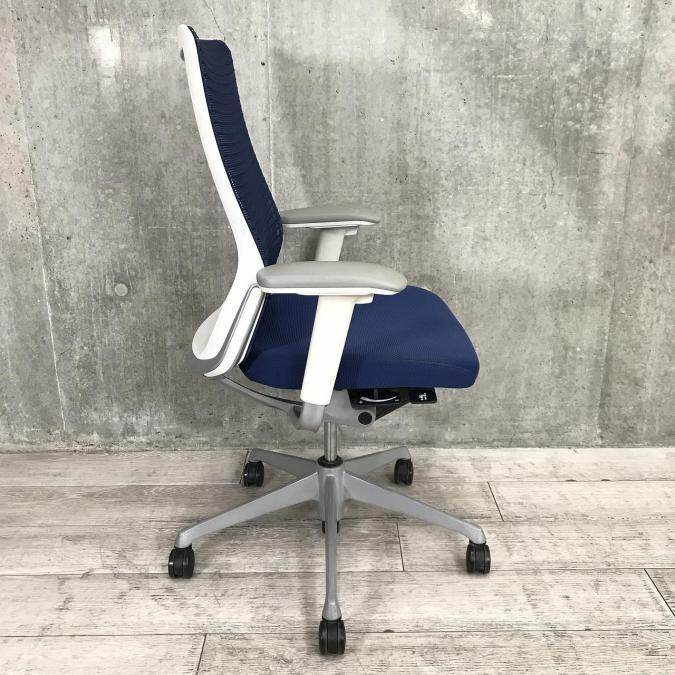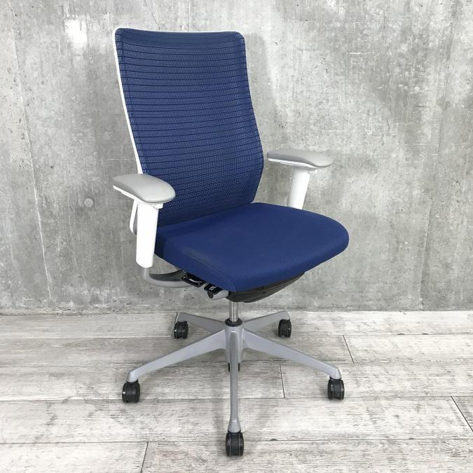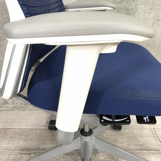 【在庫入替セール】【5脚入荷】【どんな空間にも調和するデザインと最上級の操作性!背面メッシュで通気性抜群!】■オカムラ(okamura)製 コーラル (Choral) 肘付ハイバック ■ミディアムブルー ■メッシュ背面 ■可動肘 ■ハンガー付【K】【T8】