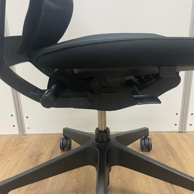 - 座面下のレバー操作により、座面を50mmのストローク(16.7mmピッチ)で好みの位置に調節できます。体格や作業姿勢に合わせたポジション設定が行えます。