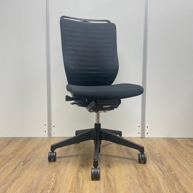 【商品入替のため、残り1脚限り】イトーキ製 エピオスシリーズ ブラックカラー 背面メッシュ ハンガー付き 操作レスで体格にマッチします! 肘無しハイバックチェア!!- 京都東寺店