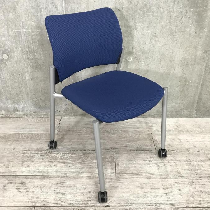 【A00980502】【快適なクッション性で長時間の会議も安心の座り心地!重ねて省スペース!】■オカムラ(okamura)製 8147シリーズ スタッキングチェア 会議用 ■キャスター付 ■ブルー【IB】- 在庫数