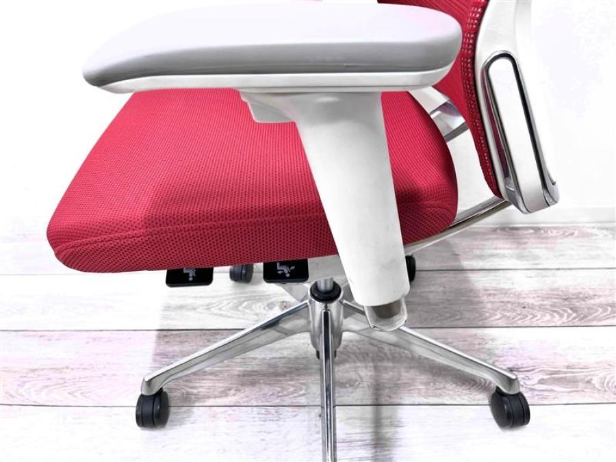 【定価19万円】【シンプルかつ高級感のあるデザイン!】■オカムラ コーラル ■肘付ハイバック ■背座レッド/ホワイトフレーム ■可動肘 コートハンガー付きサーキュラーバリューCO2削減量の算出について