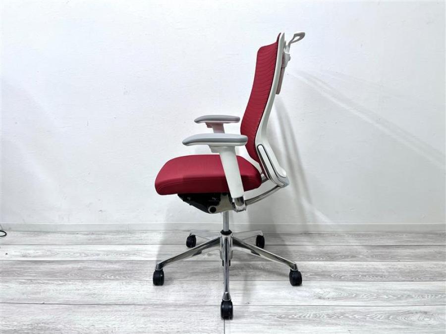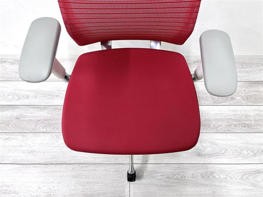 【在庫入替セール品】【定価19万円】【シンプルかつ高級感のあるデザイン!】■オカムラ コーラル ■肘付ハイバック ■背座レッド/ホワイトフレーム ■可動肘 コートハンガー付きサーキュラーバリューCO2削減量の算出について