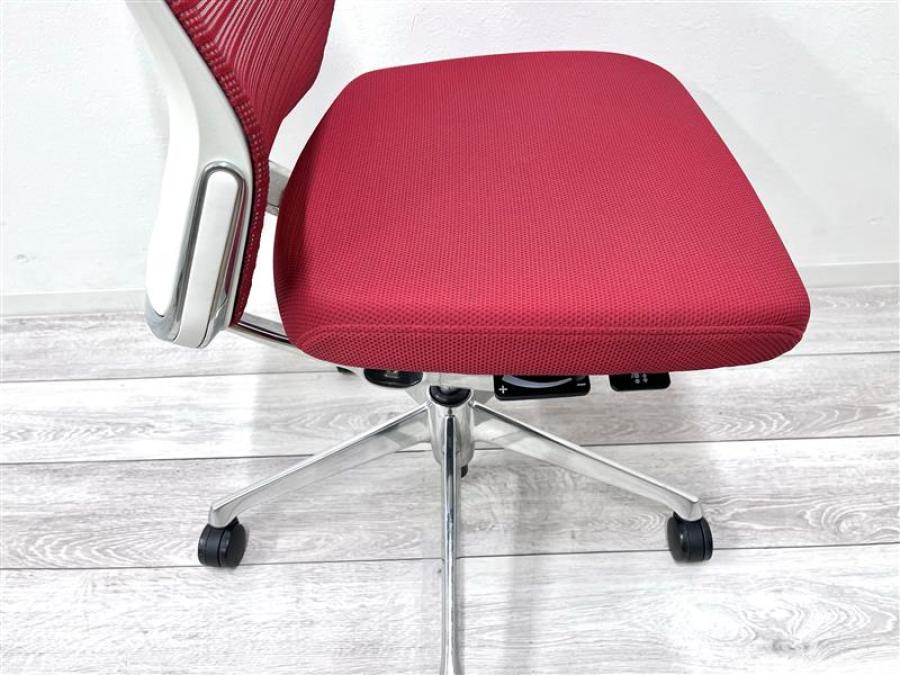 【在庫入替セール品】【定価19万円】【シンプルかつ高級感のあるデザイン】■オカムラ コーラル ■肘無ハイバック ■背座レッド/ホワイトフレーム コートハンガー付きサーキュラーバリューCO2削減量の算出について